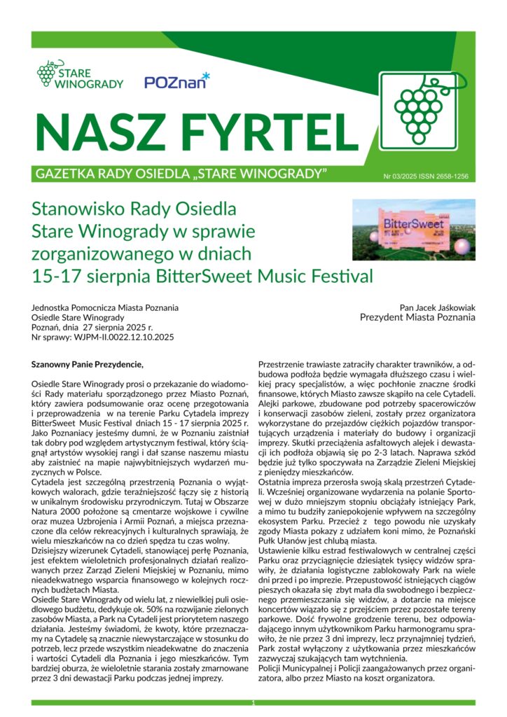 Nowy numeru kwartalnika osiedlowego NASZ FYRTEL jest już dostępny. Czynimy starania by wiadomości docierały do jak największej ilości mieszkańców. Przekaż link do kwartalnika w wersji elektronicznej znajomym.