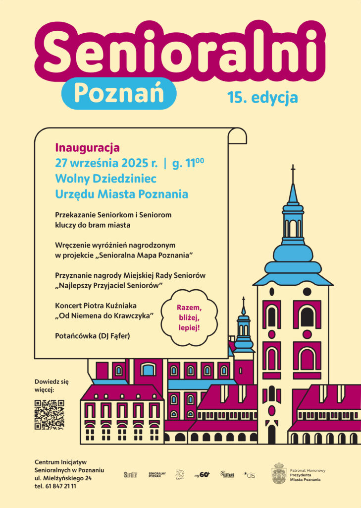 W tym roku inauguracja cyklu „Senioralni. Poznań” odbędzie się 27 września o godz. 11.00 na Wolnym Dziedzińcu Urzędu Miasta Poznania.